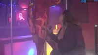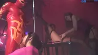 In a seedy underground club, the Bisexual Strippers Submission and Domination in Cages is about to begin.The stage is set with a series of cages surrounding it, and within those cages are a variety of sexy individuals eager to put on quite the show for their audience.The atmosphere is electrified by the anticipation of whats to come as patrons gather around, ready to indulge in this spectacle of kink and desire.As the curtains rise, two strippers enter, one male and one female, both wearing skimpy outfits that showcase their toned bodies.The woman is clad in a leather ensemble, while the man wears an outfit made entirely of latex.Their movements are smooth and confident, eliciting gasps of approval from those watching them.The pair then make their way to a central cage, where they eagerly lock eyes and begin a sultry dance of domination and submission, interspersed with elements of bondage and pain play.The man, wearing a gag in his mouth and adorned with boots and handcuffs, is clearly in the submissive role, while the woman, wearing a collar around her neck and stockings, revels in her newfound power.The crowd is captivated as they witness the display before them, a true testament to the erotic nature of power exchange.The male strippers cock is prominently on display beneath his tight latex outfit, his hard erection standing at attention for the duration of the performance.Its clear that his audience is not only intrigued by his ability to maintain such a state of readiness but also eagerly anticipates the moment when he will receive a blowjob from the dominatrix woman.As the female stripper approaches him, she expertly takes his cock in her mouth while maintaining control over her partners body and movements with the use of chains attached to both their harnesses.The man is tied down and subjected to a relentless barrage of pleasure and pain as the crowd cheers them on, encouraging this erotic display of domination.Eventually, the woman pulls back, allowing her submissive partner to thrust into her from behind.Her skirt rides up to expose her cunt, which he eagerly enters as she bends over to take him even deeper.The sight is erotically enticing and sends a wave of desire through the audience members.The performance continues with a variety of kinky positions and activities, showcasing an array of BDSM practices that leave the viewers breathless and desperate for more.As their climaxes approach, the mans cock is jerked off furiously until he releases his cumshot all over the stage, followed shortly after by his partner, who has a powerful orgasm while still riding him.The moment is an explosive culmination of sexual energy that leaves those in attendance spellbound and yearning for more.